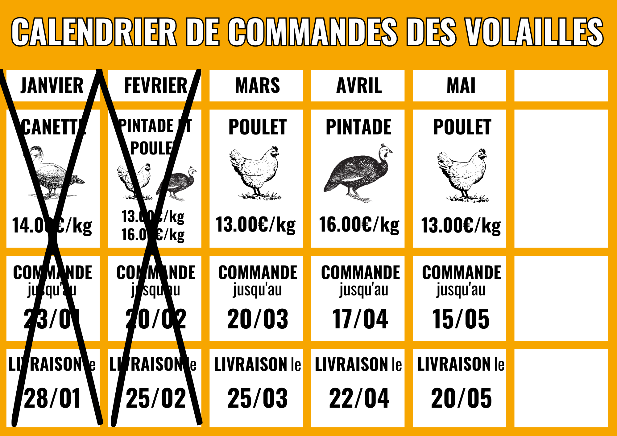 Nous vous proposons chaque mois des volailles élevées en plein air de la Ferme des Raux, située à Gerzat (se sont les voisins du Biau Jardin !)