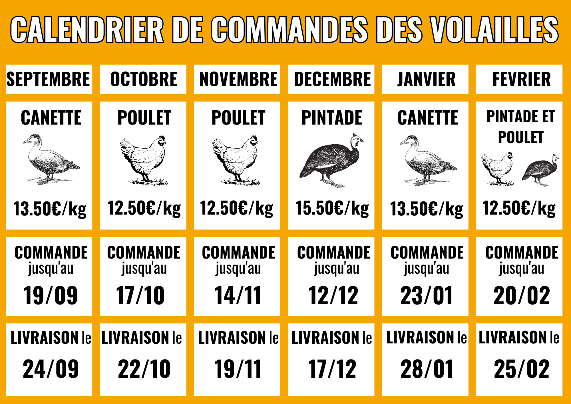 Nous vous proposons chaque mois des volailles élevées en plein air de la Ferme des Raux, située à Gerzat (se sont les voisins du Biau Jardin !)